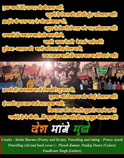 *) – “Meri Aazadi ka Ruab” exclusively at Fenil Comics website and social media pages. by yours truly, Yash (Harish Atharv) Thakur, Soumendra Majumder, Ajay Thapa and Manabendra Majumder. ———————– *) – Page from another WIP project “Desh Maange Mujhe” with Prince Ayush.