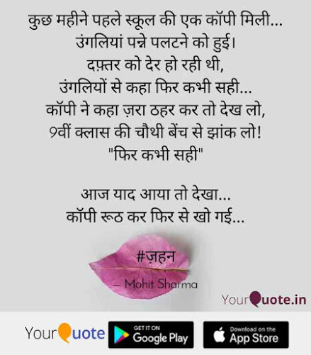 कॉपी ने कहा ज़रा ठहर कर तो देख लो,9वीं क्लास की चौथी बेंच से झांक लो!"फिर कभी सही"