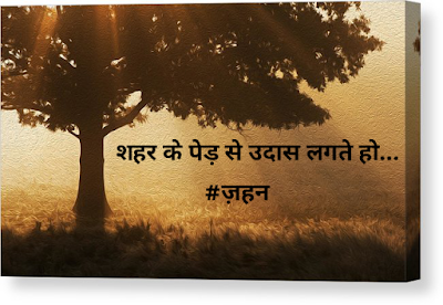 दबी जुबां में सही अपनी बात कहो,सहते तो सब हैं......इसमें कया नई बात भला!जो दिन निकला है...हमेशा है ढला!बड़ा बोझ सीने के पास रखते हो,शहर के पेड़ से उदास लगते हो...पलों को उड़ने दो उनहें न रखना तोलकर,लौट आयें जो परिंदों को यूँ ही रखना खोलकर।पीले पननो की किताब कब तक रहेगी साथ भला,नाकामियों का कश ले खुद का पुतला जला।किसी पुराने चेहरे का नया सा नाम लगते हो,शहर के पेड़ से उदास लगते हो...