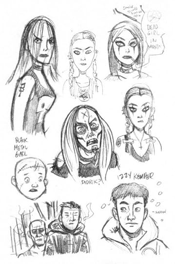 Character sketches for the Hellboy: Weird Tales story I did called "Professional Help". The story featured Roger the Homonculus and a fellow B.P.R.D agent investigating a series of church burnings in Norway. And a bunch of other stuff crammed into ten pages -- a Black Metal cult, a Quisling Universist scientist enclave, a baby Frost Giant, and the entire affair book-ended with a second story involving a murder investigation. I worked the whole thing way too hard, stiff-armed the pencils and ached the inks, intimidated by Mignola's shadow and the caliber of artistic talent on the anthology.