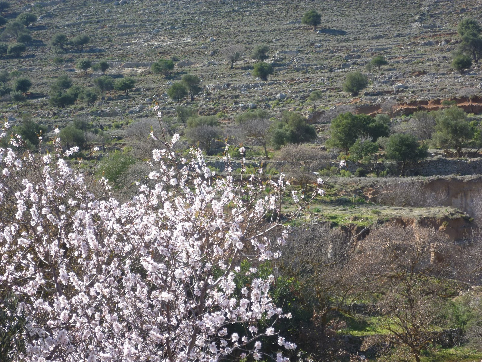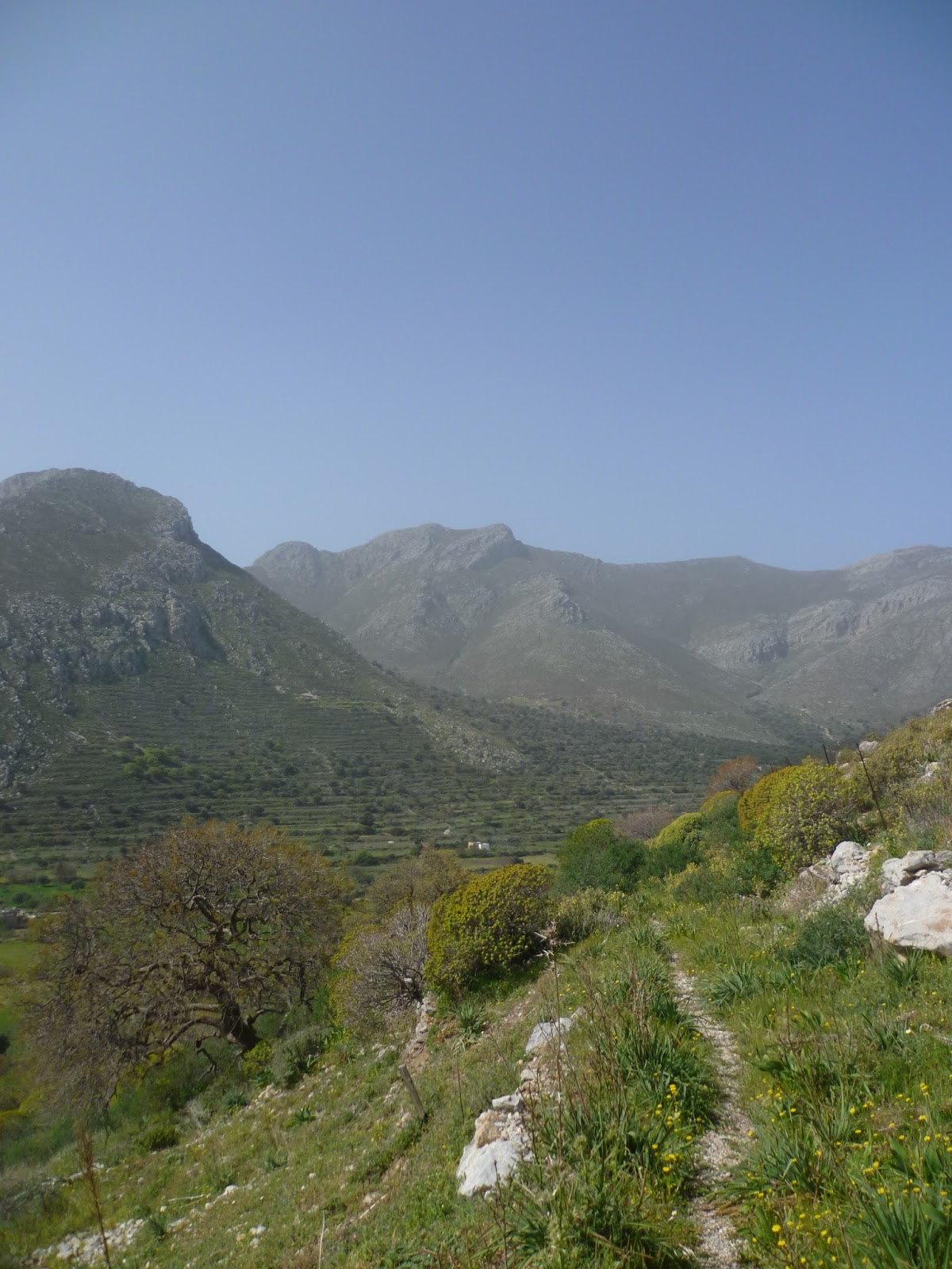 I was planning to write about Apokries – since today ends the first week of this three-week period before Lent, and I’ve been unearthing some interesting stuff about pagan ceremonies to drive out the evil spirits of winter – but I’m running out of space, and with the sun shining in a blue sky and that walk yesterday, any evil spirits feel well and truly subdued. So instead I will tell you quickly about Thursday, when I arrived at Kali Kardia to much enthused shouting and argument.It seems there was some problem with the reading of the electricity meters, and Lefteris was standing his ground saying it wasn’t his fault, while Nikos the ex-Taxijis turned as red as his jaunty shirt in anger, and Grigoris of the many orange trees stated his case. Nikitas sat quietly slouching in his tweedy jacket and thin scarf, peering over his glasses to roll his cigarette. ‘Why are you shouting?’ he asked Grigori. ‘Are you scared?’ roared Grigoris back. ‘No, why are you shouting?’ persisted Nikitas calmly. ‘Because I want to shout!’ laughed Grigoris. When Gunter left, Nikitas hurried after him, worried he’d been driven off by the argument. ‘Ohi, efige omorfa,’ said someone, he left in a nice way.