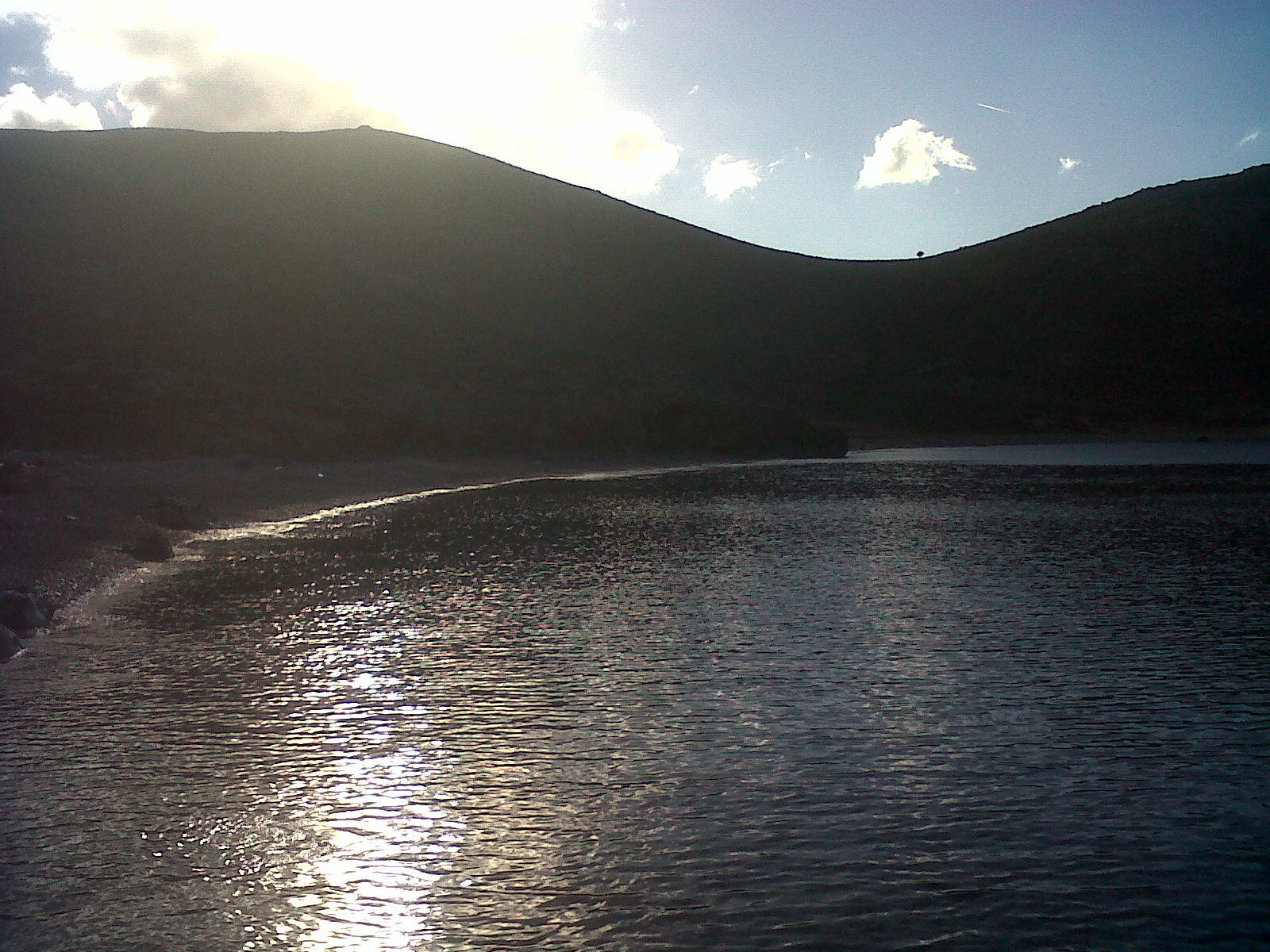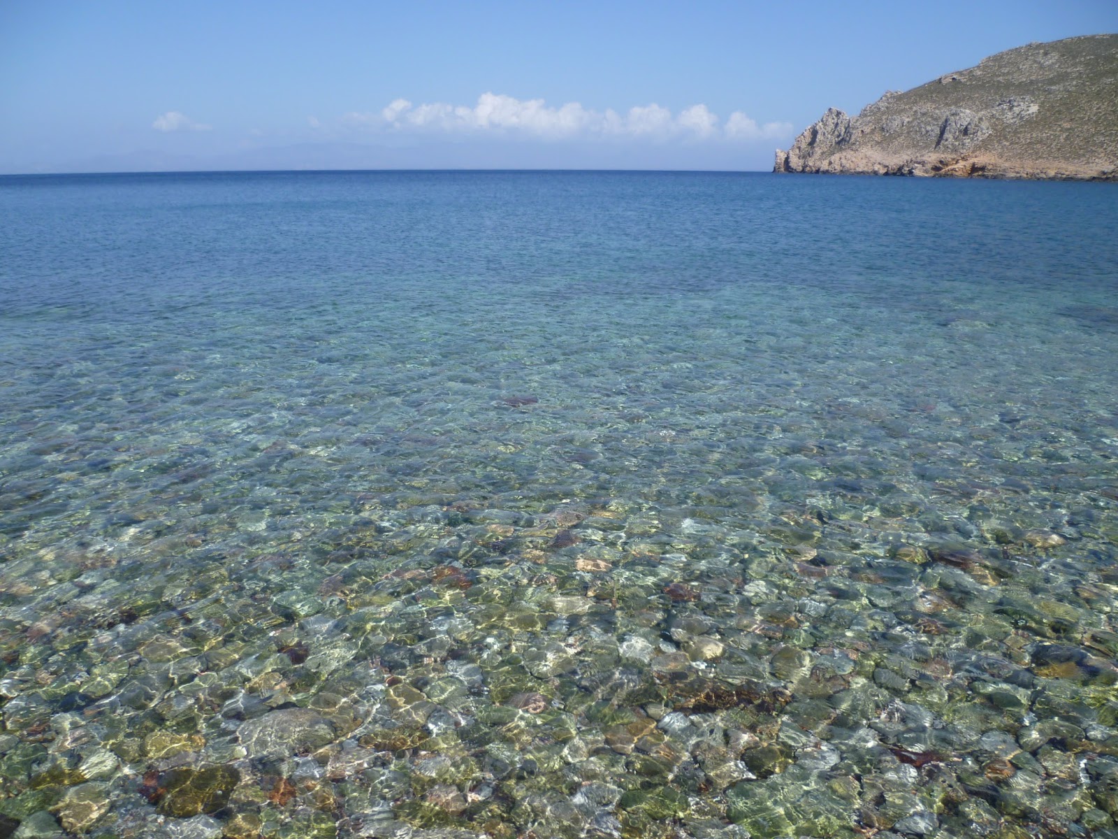 When we made it back down to the shore at Ayios Andonis, we had a surprise. First, the sun was winning over the clouds.