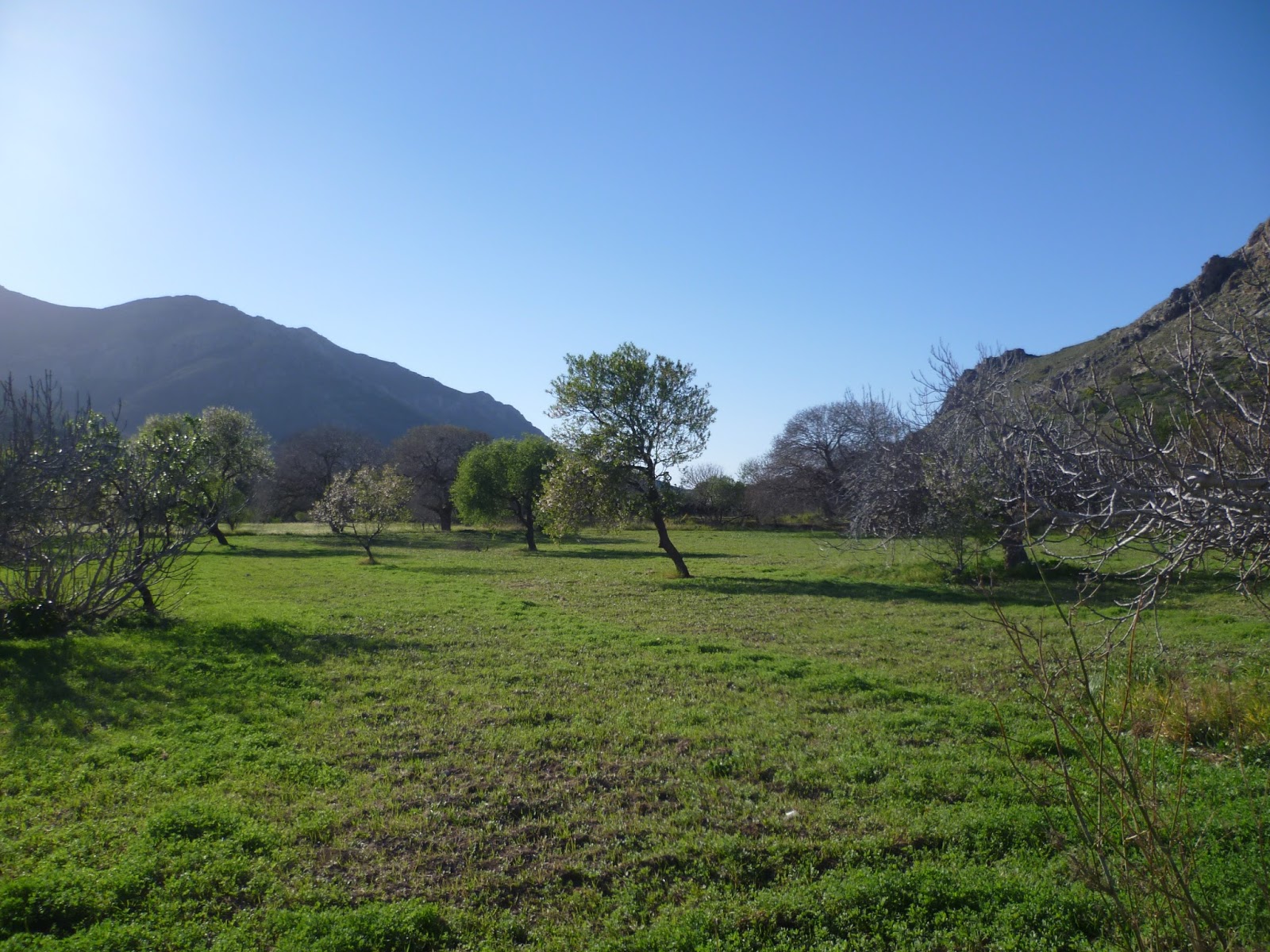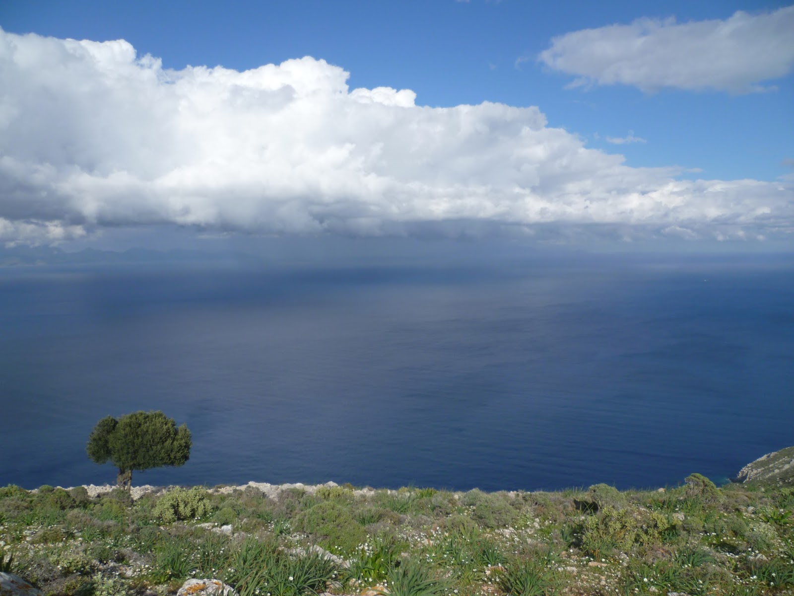 Yesterday, Friday, it rained all day. I walked to Ayios Andonis in the afternoon and got soaked to the skin. Lisa and I don't mind a bit of rain, but even she baulked at the big, driving hailstones and we had to take shelter. Today it's sunny but there's a sharp, strong wind blowing that almost brought me to a standstill on the way back from Eristos. We're settled in front of the heater for the night. But Tuesday... Tuesday was beautiful. And since I had to visit the ATM anyway, I took the afternoon off and walked in shorts and t-shirt to Livadia. I saw almond blossoms, wild cyclamen, an eagle... And of course, I went for a swim.