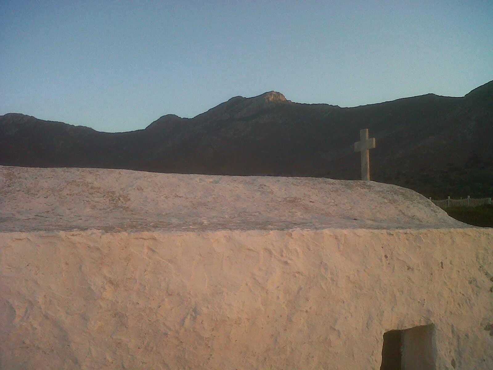 At first, the lifejackets seemed to have been removed, but Mum figured out that the windstorm might have blown them in to shore, and sure enough we found them all in the scrub bushes. Fearing they’d be scorched by the sun and left as rubbish, we gathered them up and carried them towards home. As we stood in the shade of a tree near Menelaus’ enclosure on the way back to the village, tourists passed us on their way down to the beach, and I laughed, realising we looked like we were selling our armfuls of lifejackets; perhaps we’d do better business down in Livadia... As we neared Megalo Horio, we looked down into the valley and saw people at the little chapel of Ayia Paraskevi. Only later did we find out it was Anna Parliara, the Silversmith jewellery maker, along with her partner and son, celebrating her birthday by painting her chapel.