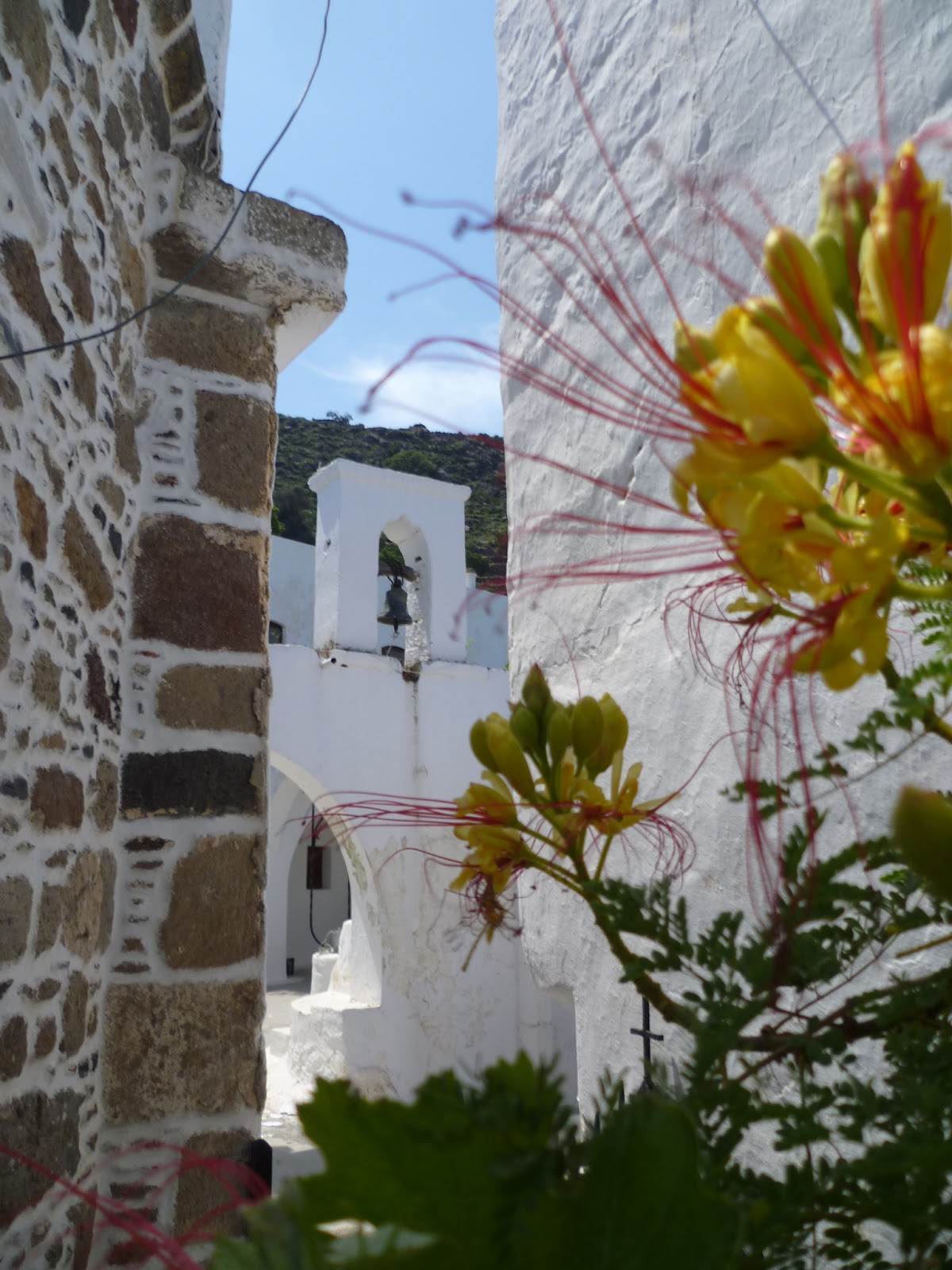 The walk was beautiful; though it’s a road, not a footpath, there are hardly ever any cars. I kept Lisa on the lead so she couldn’t chase the goats. We passed the little monastery of Kamariani, where back at the start of the year I had arranged to meet Ian – known to locals as Yianni – for a walk to Plaka.