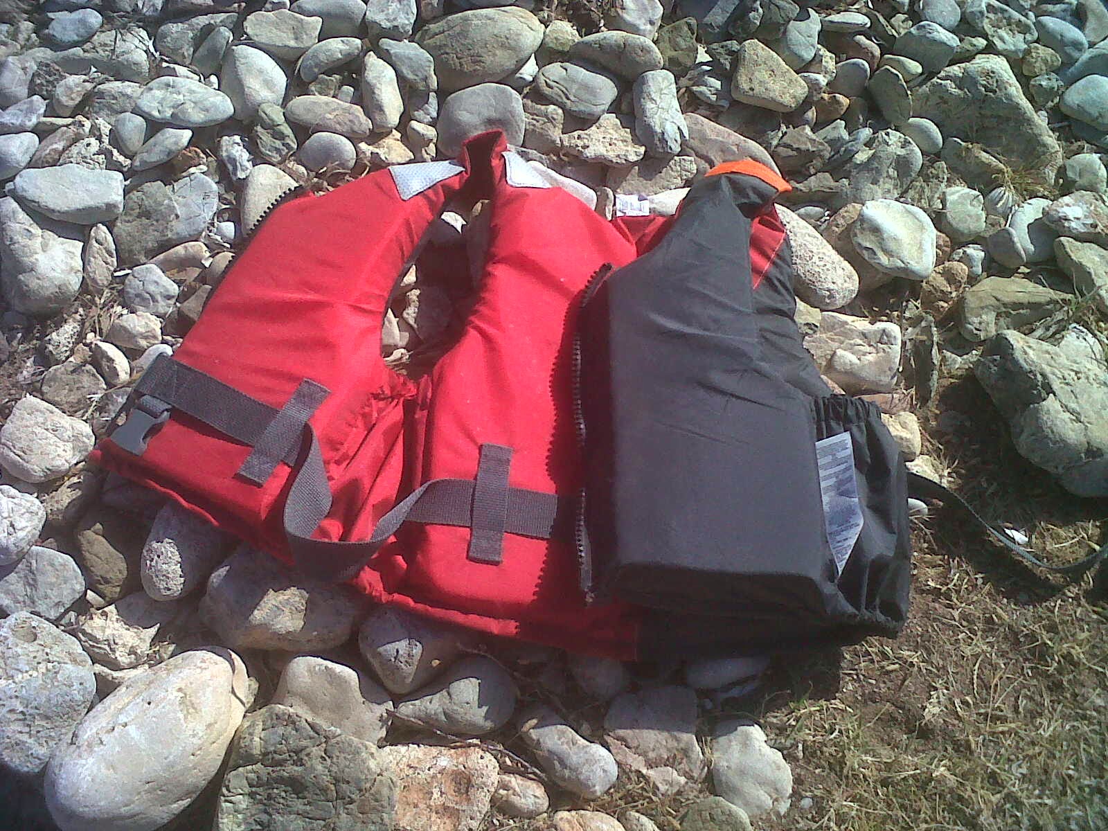 We were leaving Skafi beach when Mum and I noticed lifejackets strewn on the pebbles.