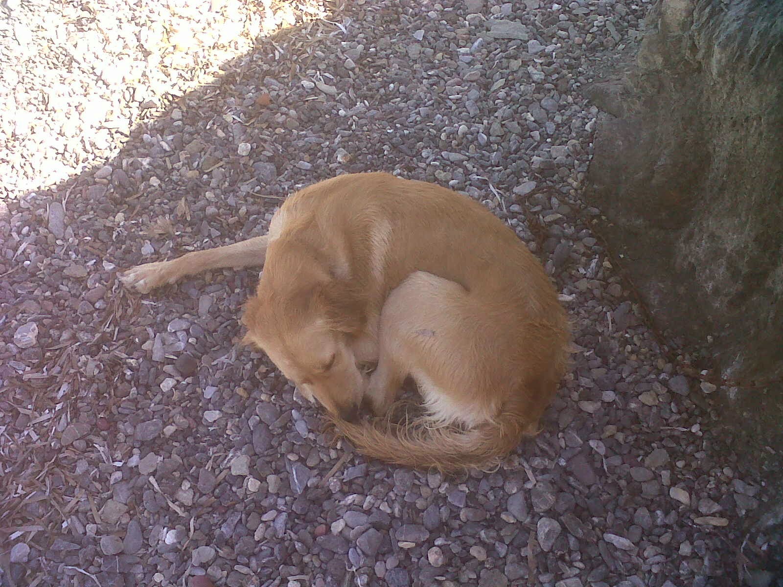 On my last nights in Tilos back in mid-July, I slept on the terrace under the stars, and Lisa spent her nights either curled up on the comfy chair nearby, or waking me up by cracking bones with her teeth. Once she came over to where I was sleeping and nuzzled me through the mosquito net.On the final morning, waking at a few minutes to five, I took her for a morning stroll. There was a big full moon over the mountain of Profitis Ilias. Back home, I dragged my big suitcase out to the car, then came back and rubbed her belly while she gnawed on the old no-longer-stuffed toy (she took the stuffing out of it last time I left). When it was time to leave, she graciously accepted a treat to eat as I left, so I didn’t have to look at sad eyes, but a happy dog. Still, I didn’t really stop crying for her until I was halfway around the world.