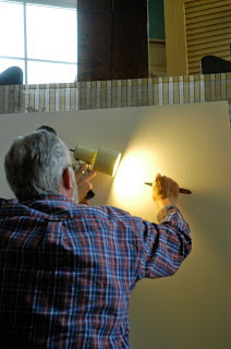 In the very early stages of the painting, Al uses a small floodlight and a painting