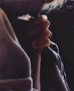 Throughout this process, I often recall something Arnold Friberg once said; something else--like the work of de La Tour--that I first encountered many years ago. I paraphrase it here. By now it is dog-eared and exists in my own expression of the idea to which he introduced me: The fire or spirit that suffuses a painting is not added at the end, but is there from the very first. If it is not there, nothing can compensate for its absence. It cannot be added at the end. (See "The Prayer at Valley Forge" by Arnold Friberg - Ensign Magazine vol. 3 no. 2 (Salt Lake City: The Church of Jesus Christ of Latter-day Saints, February 1973), center insert.)