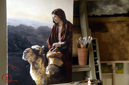 Elspeth has several oil paintings in progress at the moment, but is nearing completion of another addition to the Studios' Book of Mormon Art Collection.