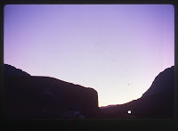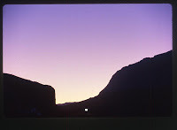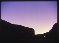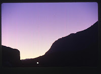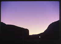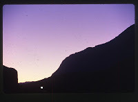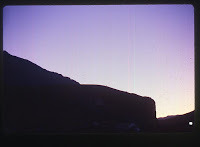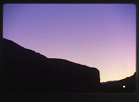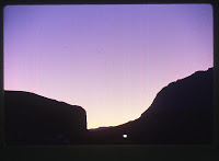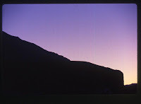 While it may be difficult to look at these images without being preoccupied with "What am I looking at?" the point is not to identify the content, but to observe your own reaction to the relationship between the frame and the configurations of the elements in the frame. (The scene is a naturally occurring land form in the very early twilight of a sunrise. The white dot is a street light.)