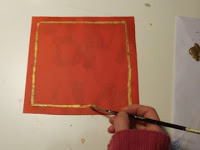 1. Paint a simple single line border about a half inch from the edge of you paper with the gold paint.