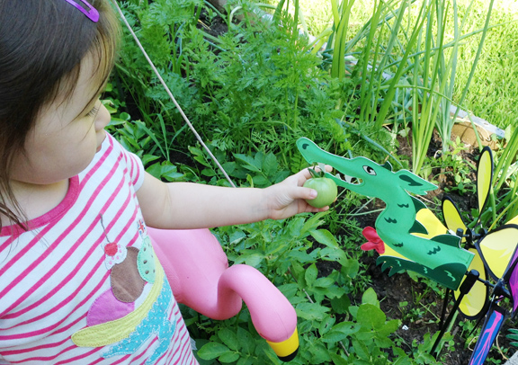 our overgrown yard is still kind of pretty, I tell people we were going for that "natural look."Maybe because Rain Dragon didn't notice the weeds. She waited eagerly everyday for something to ripen so that she could pick.
