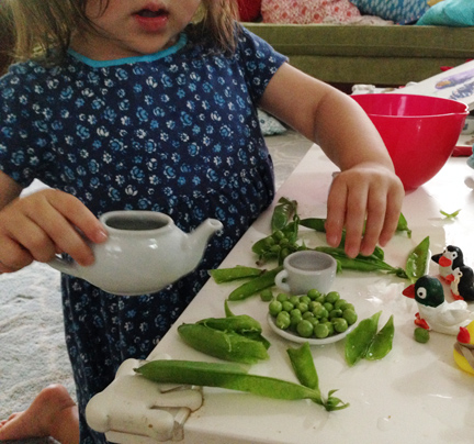 "I'm having a pea party!"And then our overgrown jungle of plants had new treasures to find: