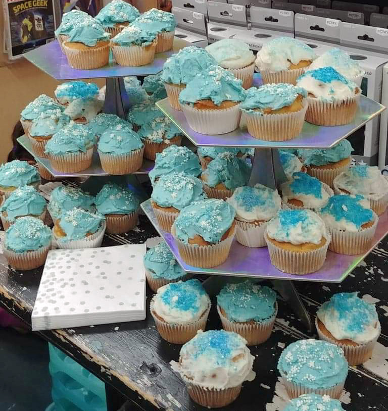 Thanks so much for coming! A Big Bed for Little Snow had a lovely birthday party at Porter Square Books with homemade, kid-decorated blue and white cupcakes: