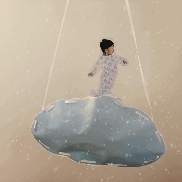 Little Snow's Mommy stuffs his Big Bed with feathers and sews it shut. With this activity you can stuff a small paper bed with feathery tissues and "sew" it shut with a two-sided sewing card. There is even a jumping Little Snow cut-out to insert in the top of the bed. Hang this craft from the ceiling to remind your young reader that one boy's bed may be another child's storm cloud.