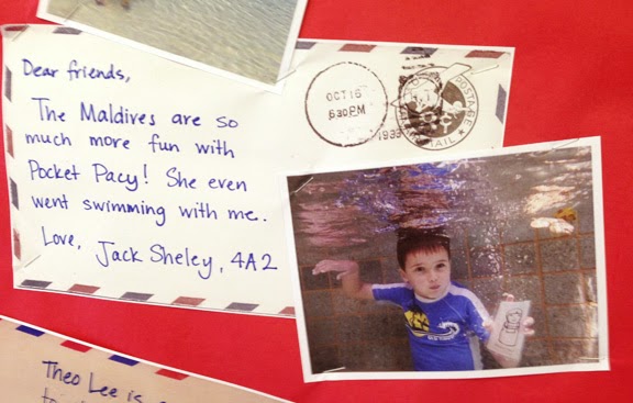 this boy laminated his pocket pacy bookmark and took it underwater!And if that wasn't enough, the upper elementary school showed off their artistry and creativity but drawing where they would take pocket pacy: