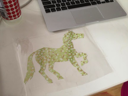 Remember those green horses? This is mine, protected by plastic, taped to my desk.