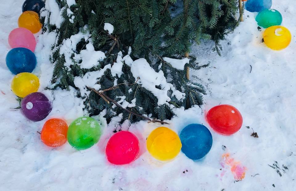 5: Bring the balloon outside and leave overnight. If possible, do not leave in the snow (we put ours on the porch). If you do put them in the snow, make sure you turn them over sometime in the night as the snow makes a blanketing affect and half of your balloon may not freeze.