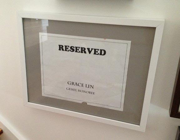 my seat reservation card at the Geisel Award ceremonyas well as my proudest: