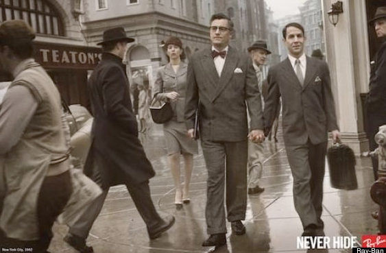 I think I'll go out and get myself a new pair of Ray-Bans.Ray-Ban's latest ad for their "Never Hide" campaign, in connection with their 75th anniversary, features two gay men (from the 40s or 50s) holding hands on a busy European street.