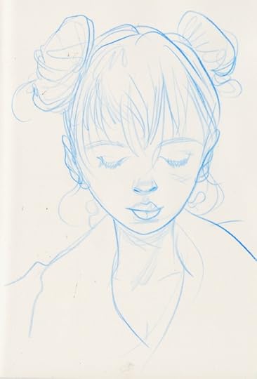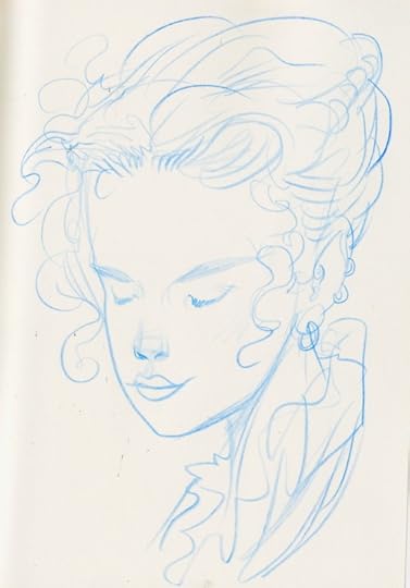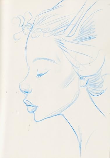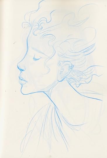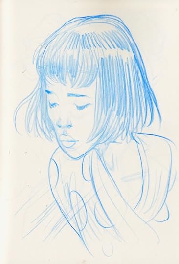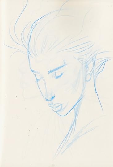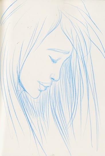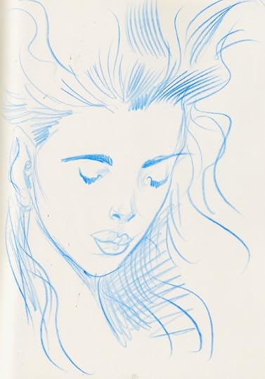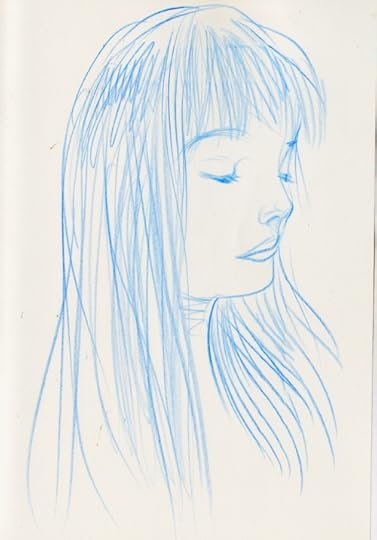 Drawing with a blue pencil crayon listening to Mahler’s 9th...