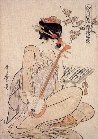 The geisha strummed the three strings of her shamisen for her Samurai master. The instrument's body encased in catskin that held the sweet vibrations like a purr. Its silk strings fashioned of the same material as the kimono in which she was draped. Three ivory pegs chorusing the hairpins shaping her high chignon hair. The three strings rubbed against one another to conjure up the sound of a whole hive of bees. The plectrum caressing against the body to conjure the rhythms of the hooves of her master's horse. Her fingers palpating the frets to make the instrument sound like sweetly dripping honey.