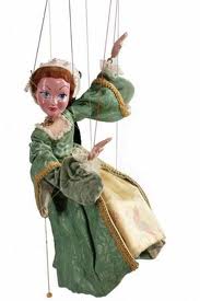 There her eyes were snagged in lines carving through the air. The light was being deflected from them as they were a blur of motion. She saw that they were thin silken wires. Furrowing, refracting with their tension and release. They didn't veer much from the vertical, plunging and recoiling with the tilt of the metal bar from which they were threaded. She could envision the amplified movements of the figure beneath their moorings, though the manipulating strings' shifts and displacements were far more contained. Funny to think such a nuanced manoeuvre from on high, a mere flexion in a single wire arrested by another cable, invoked such an exaggerated behaviour from below. She was put in mind of plucked harp strings. But when another bar with fewer strings, one she deduced controlled the legs, was brought perpendicular to those hanging down, it more resembled a bow gliding across a violin. Knowing what they controlled and articulated, now the threads took on the form of an external nervous system. Twitching, pulsing, transmitting their signals down their trajectory. Inciting mechanical reactions in the wooden limbs moored at their culmination. The lumpish, leaden body underscored as a mere vessel, through the convulsive vital flutterings of the silky lattice above. For all its seeming capering, it was dumbly relaying the forces imparted to its armatures.