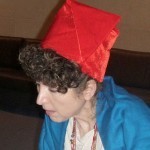 Caroline Lawrence has been writing detective stories about first century Rome and the Wild West for over a dozen years. Her passion for plotting combined with an obession with historical accuracy means her history-mystery stories are popular with children, parents and teachers. Here she is at a Christmas booksigning, wearing her pileum or freedom cap.