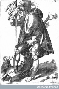 Saint Roch: The story goes that a dog saved Roch from the plague by licking his wounds. Credit: Wellcome Library, London