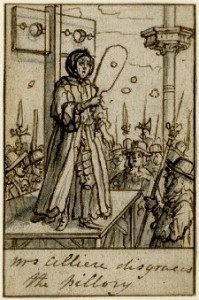 Possibly my favourite historical figure of all time is Elizabeth Cellier, the ‘Popish Midwife’ who was involved in one of those complicated ‘plots’ of late seventeenth-century England; the ‘meal-tub plot’, in which a list of plotters turned up in her kitchen. Was it genuine, or planted by those who wanted to represent Roman Catholics as a threat to social order? She published some pamphlets defending her innocence, but ended up in the pillory after making allegations she couldn’t prove. She then returned to the historical spotlight in 1687, when she put forward a proposal for a College of Midwives in which the membership fees would fund a foundling hospital, thus hopefully reducing rates of mortality in childbirth while at the same time looking after unwanted babies.
