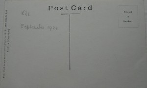 My husband and I left the fleamarket, but all day our conversation returned to the postcards, as we imagined the story of V.L.L.'s cards, which were from all around Europe. Perhaps V.L.L. had been a former soldier or military nurse who had gotten a taste for travel while in service. Perhaps V.L.L. was merely an armchair traveller whose friends brought back pictures of their own trips. Or perhaps V.L.L. was a war widow, who took up a life of travel instead of remarriage. The fictive possibilities were endless, exhilarating.
