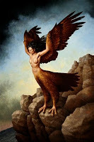 Le Arpie erano divinità mostruose generate da Gea la Terra, e forse la loro origine vuole mitizzare le tempeste. I loro nomi? Ellopus, dai piedi come il vento; Occipete, colei che vola rapida; Celeno, l'oscura. Divinità alate dai lunghi capelli disciolti e sventolanti, che Virgilio descrive così nell' Eneide: “...vergini ai volti, uccelli e cagne l'altre membra. Hanno di ventre un fetido profluvio, ond'è la piuma intrisa e irta; le man d'artigli armate, il collo smunto; la faccia, per la fame e per la rabbia, pallida sempre e raggrinzita e magra”.