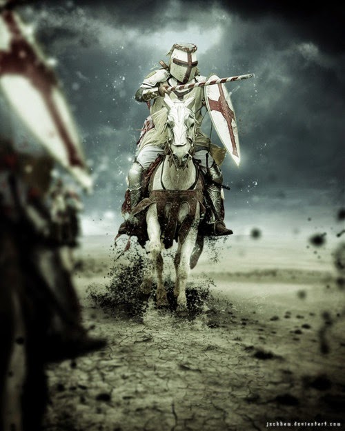 La carica frontale, tanto apprezzata dagli scrittori di tutti i tempi, così come dai cavalieri e dalle fonti storiche dell'epoca, ha come scopo principale quello di suscitare il panico nell'avversario, spingendolo così alla fuga scomposta e dovrebbe essere descritta dopo una “preparazione” con una scena di arcieri e balestrieri. I cavalieri, sempre nel Medioevo, erano di solito raggruppati su tre, cinque ranghi, poi in file o in squadre di venti e trenta riunite attorno alla bandiera o al vessillo. L'insieme di più squadre formava un battaglione.Ora, voi scrittori e scrittrici di battaglie, avete a disposizione sulla carta un esercito che conta generalmente tre o quattro battaglioni. Fate campi lunghi come i registi (come Mr. Scott, quando ci mostra tutto l’esercito romano schierato). Mostrate dunque le squadre che caricano in ordine serrato, magari una dopo l’altra, in una successione che abbia logica e ordine. Che so, i cavalieri che abbassano insieme le proprie lance dando di sprone alle cavalcature per accelerare fino all'urto frontale. Come un buon regista mantenete la compattezza dei vostri uomini, condizione imprescindibile per il successo. Perché voi siete un generale e una manovra di questo genere esige disciplina.