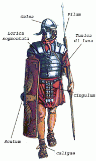definire di stato maggiore. Oltre al legato, il comando della legione comprendeva sei tribuni e un praefectus castrorum, del quale faceva parte anche il centurione primipilo. Quest’ultimo era il solo militare di professione. I tribuni e il Legato dovevano essere immediatamente riconoscibili.Anche se non possiamo parlare di una vera a propria uniforme, poiché spesso indossavano capi ed equipaggiamenti di scelta personale, essi seguivano però canoni precisi: l’armatura (lorica) riproduceva l’anatomia del torso umano e poteva essere in metallo, cuoio bollito o lino indurito. Su di essa c’era esposto un lembo di tessuto con il classico nodo, che segnalava la condizione di comando. Solitamente non portavano l’elmo mentre era quasi d’obbligo l’uso dell’ampio mantello militare color porpora, allacciato sulla spalla destra.Vi ricordo che S.P.Q.R . non vuol dire Sono Pazzi Questi Romani, come afferma il simpatico Obelix, ma Senatus Populusque Romanus , ovvero “ Il Senato e il popolo romano ". La frase indica che, alla base del potere della Repubblica romana c’erano patrizi e plebei, fondamento dello Stato. Oggi è ancora citato sullo stemma della città di Roma mentre l’Aquila Imperiale, con le ali spiegate e il becco rivolto a destra. era l'emblema dell'Impero Romano. L'aquila bicefala rappresentò invece i due imperi, Occidente ed Oriente.