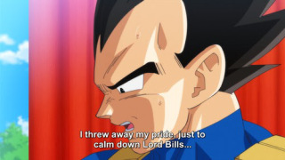 -But perhaps the most painfully humiliating moment is when Vegeta has to dance and sing to calm down the God of Destruction, Bills, so he doesn’t destroy Earth. Let me tell you, as a viewer you want to laugh and look away from your t.v. screen at the same time because you vicariously feel Vegeta’s humiliation so powerfully; it’s like your own dignity is shattering while you watch.