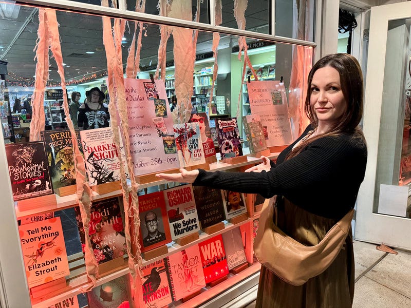 The 2025 tour schedule officially kicks off on March 21 at Inkwood Books in Haddonfield, NJ—easily one of my favorite indie stores in the area, about a stone’s throw from Philadelphia. The booksellers are awesome, the area is a charming little destination, and last time I visited, the store was fostering kittens named after publishers. Simon, a very sweet black kitty named for Simon & Schuster blended in so nicely with my dress, and he helped me sign lots of books!