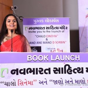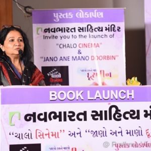 Glimpses of the book launch event of renowned Gujarati authors Padma Shri Bhawana Somaiya and Shri Krishnakant Unadkat – The event was graced by renouned Actress Aruna Iraniji. The Books launched are Chalo cinema by Bhawana Somaaya and Jano ane mano Durbin by Krishnakant Unadkat.