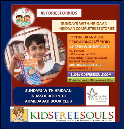 Hridaan Patel completes Read Along Sundays with Hridaan 25 Stories. He will be Reading the 26th story – a classic Alice in Wonderland.