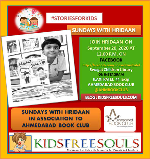 SUNDAYS WITH HRIDAAN is in Association to @Ahmedabad Book Club – on Instagram @ahmbookclubStay connected. Also on Hridaan Patel’s Official Page and Swagat children library on Instagram – ilaxi patel
