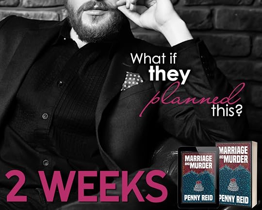 ** 1 Week **Just one week people. Singular. It’s starting to feel very real. Early reviews for ‘Marriage and Murder’ are coming in and I think y’all need to gird your loins. Just a suggestion. A loin suggestion, if you will.“Penny Reid is extraordinary. She has crafted a fantastic murder mystery that’s woven through the most wonderful Winston love story, giving us romance, Cletus, family love, Cletus, suspense, Cletus, and even (fabulously) tears.” –Author April WhiteMARRIAGE AND MURDE...