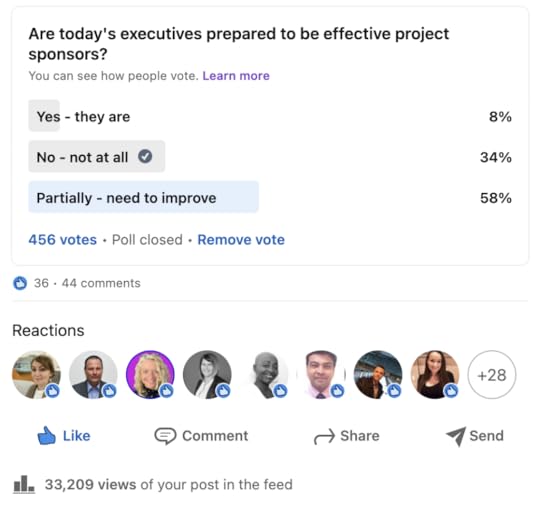Recent LinkedIn survey: Executives are not prepared for sponsoring projects“The project management profession has been hoping, for more than 40 years and in vain, that executives dedicate time to learn the importance and the key responsibilities of their role when sponsoring projects. If we want to increase our low project success rates exponentially to succeed in the Project Economy, we can not wait any longer.”