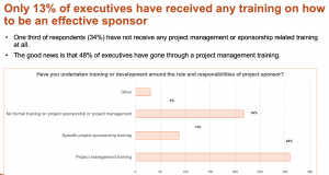 In my experience, I’ve seen that having an effective sponsor contributes at least 30%, if not more, to a project’s success. Yet, according to recent research carried out jointly with Harvard Business Review, only 13% of executives had received specific training on becoming successful project sponsors.