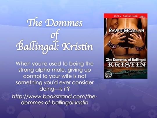 Raven McAllan has come to share a little about her new book, The Dommes of Ballingal: Kristin, which is out today. But first let's hear a little about Raven in her own words.