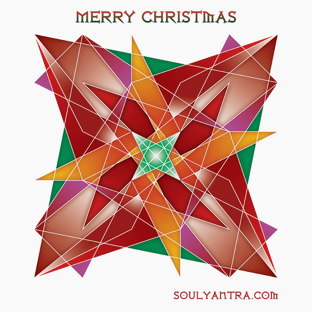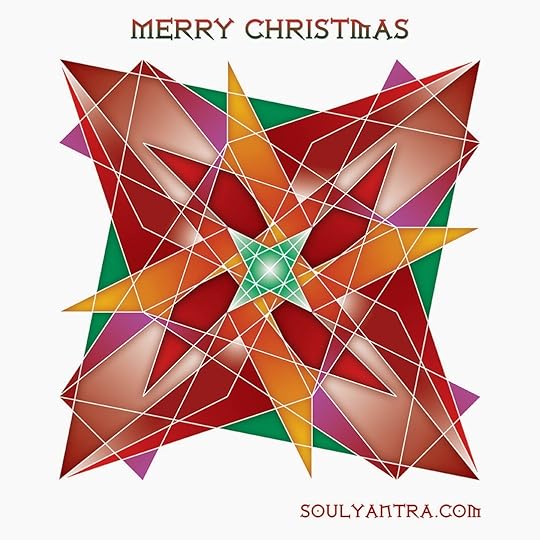 This is the geometric signature (soul yantra) of the words, "Merry Christmas" based on the numerology of each of the letters and mapped to a magic square. I have found some very revealing geometries when I map a person's name or a statement and typically the people whom I create their soul yantra will be able to identify with the geometry and the colours I choose.