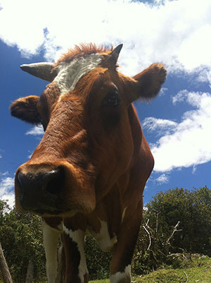 GitaOur cow, Gita was rescued from a slaughterhouse in a nearby village. Because of the trauma she suffered on the slaughterhouse farm, she has a rebellious personality and demands respect.Gita was one of the cows selected to be a milker, a process that requires artificially impregnating (raping) her, but because of her strong personality, she would not allow anyone to touch her. As a result, Gita was forced to wear steel chains on her legs and receive repeated electric shocks to break her spirit. But Gita would not surrender or obey anyone. In the end, the farmers realized she was bad for business and decided to send her to be slaughtered.She was only one and half years old!