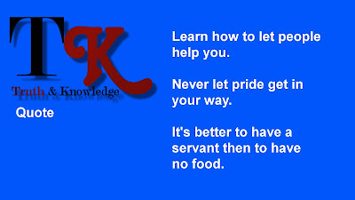 Learn how to let people help you. Never let pride get in your way. It's better to have a servant then to have no food.