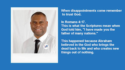 When disappointments come remember to trust God.In Romans 4:17. This is what the Scriptures mean when God told him, "I have made you the father of many nations." This happened because Abraham believed in the God who brings the dead back to life and who creates new things out of nothing.https://crosssides.blogspot.com/