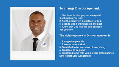 To change Discouragement.1. You have to change your viewpoint. Look within yourself.2. For the right view point look to God.3. Look to God Faithfulness in the past4. Know that God has will and purpose for your life.The right response to Discouragement is1. Reorganize your life.2. Resolve to trust God3. Trust God to be in control of everything4. Trust him to be good5. Trust God to be with you in every circumstanceNow Resist Discouragementhttps://crosssides.blogspot.com/
