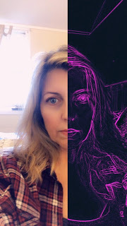 Snapchat: *Never* use it, only check it rarely to see what young, hip family members are up to (answer not much) --however, because I *wasn't* on social media I decided to check it. Found photo filters and this happened--